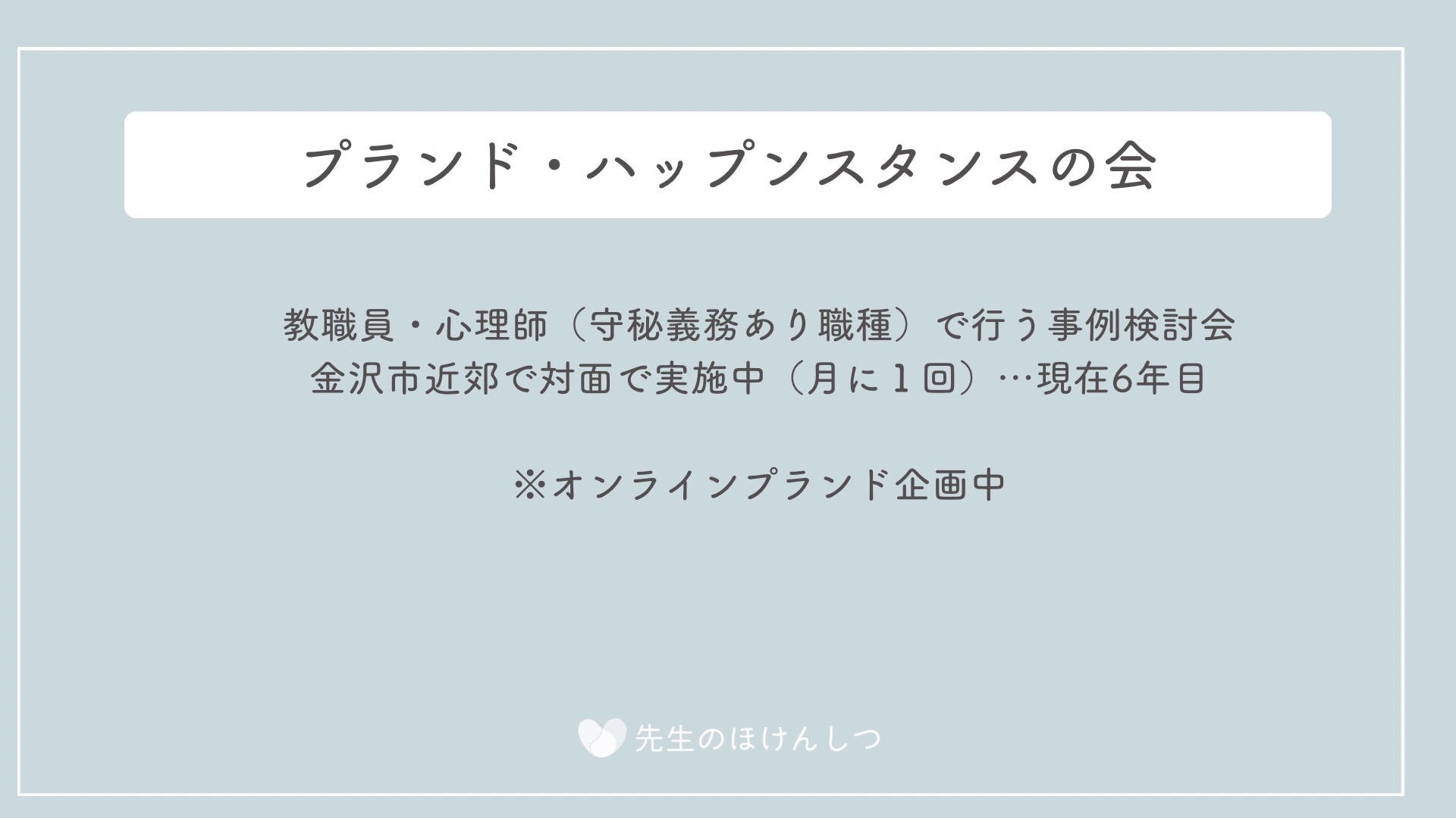 石川県内にお住まいの教職員の方々やSCの方々など守秘義務がある職種の方